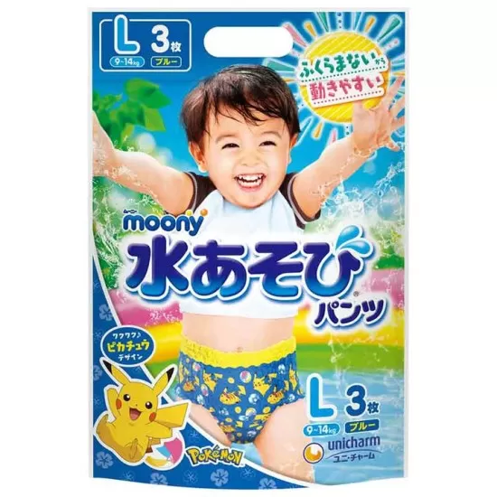 Būti pirmas peržiūrėti "Japoniškos Maudymosi MOONY sauskelnės-kelnaitės, L, 9-14 kg, berniukams, 3 vnt."