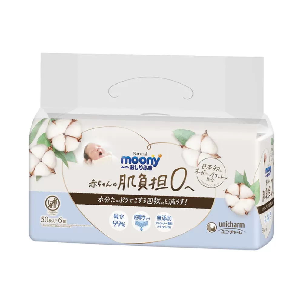 Moony Natural ypač jautriai odai drėgnų servetėlių komplektas 6x50vnt.